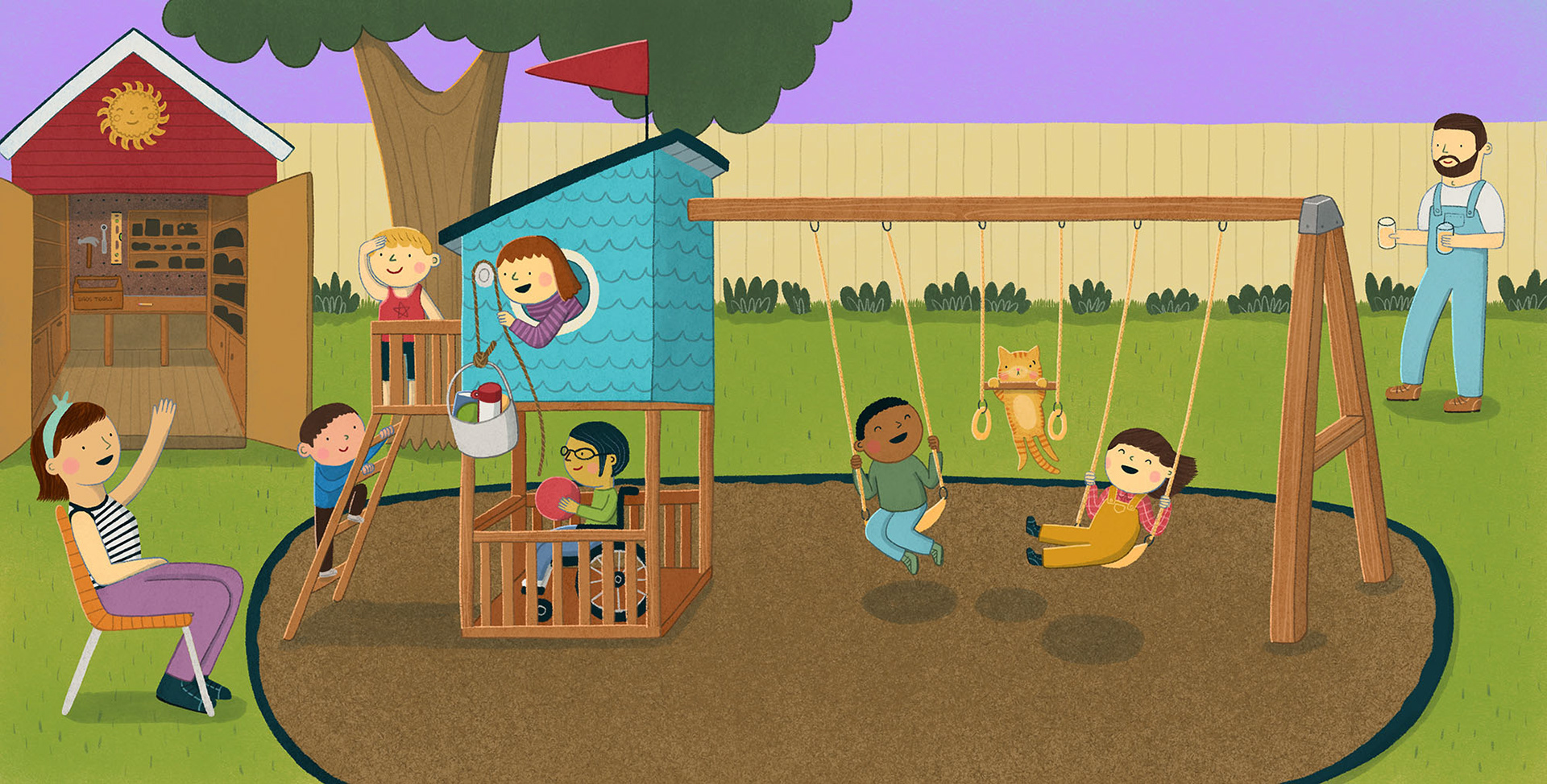 "Twist the ratchet. CLACK, CLICK, CLACK. Now a hammer. Just one THWACK! Join in on the excitement, as a young girl helps her mom and dad build a swing set. Learn the names (and sounds) of the different tools and what they are used for as each tool has a job to do. Celebrating the pride in a job well done, BING, BANG, PLING is a charming ode to backyard fun and DIY."